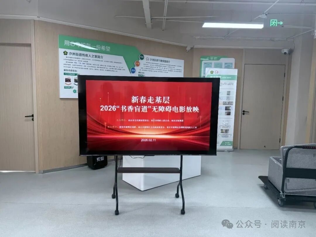 为深入推进全民阅读普及,切实保障残疾人等特殊群体的文化权益,让特殊群体在新春佳节来临之际感受到社会的关爱与温暖,近日,“新春走基层-2026‘书香盲道’无障碍电影放映”活动在南京市建邺区沙洲街道残疾人之家温情开启。此次活动由南京市全民阅读促进会、南京市残疾人联合会、南京出版集团联合主办,南京市建邺区残联、南京市建邺区全民阅读促进会、南京市建邺区沙洲街道残疾人之家共同承办,以光影为桥,以温情为纽带,为辖区残疾人朋友带来了一场特殊的视听大餐,用文化力量点亮特殊群体的新春期盼。