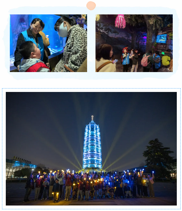 秦淮区联动南京海底世界、大报恩寺遗址公园等著名景点景区,为孤独症儿童带来了一场治愈之旅。在南京海底世界,孩子们通过定制化探索动线感受了海洋的脉动,与海豚进行了隔空击掌等互动环节;在大报恩寺遗址公园,他们参与了特别策划的亮灯仪式,感受了千年灯火的辉煌与温暖。这些活动不仅为孩子们带来了欢乐与惊喜,更呼吁社会各界关注孤独症群体,为他们创造一个更加包容、友爱的环境。