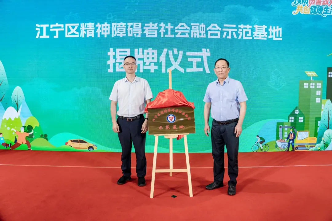 活动现场,江宁区精神障碍者社会融合示范基地揭牌,标志着区域精神残疾预防与康复迈向新阶段。该基地由省、市、区残联及多部门协同共建,旨在为精神障碍者提供职业技能培训、心理支持及社会适应训练,推动其平等融入社会、实现自我价值。2025年江宁区残疾预防日宣传教育活动暨精神障碍者社会融合户外拓展也正式启动。