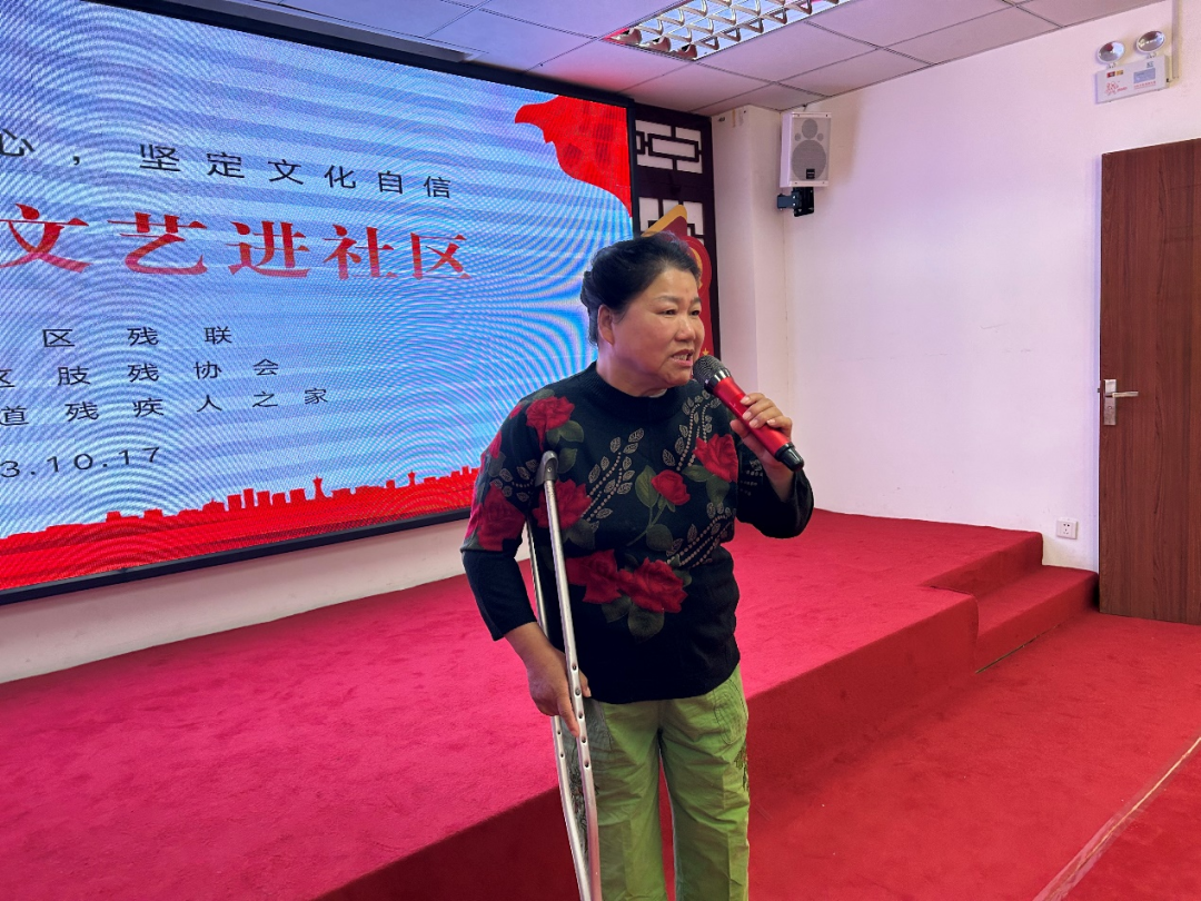残障人士吴慧芳激动地说:残疾人文艺进社区活动,让我开阔了视野,增长了历史文化知识,丰富了精神生活,在家门口贴近享受难得的文化生活,实在太好,太方便了,值得点赞!