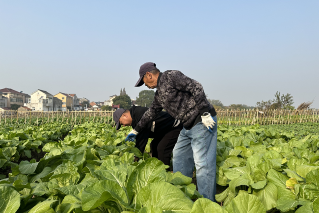 走进高淳区古柏街道凤袁村郭村,沿着村口树立着“幸福小菜园”标示牌一路向前,就来到了“幸福小菜园”农疗基地。菜园沟渠配套、平整有序。蔚蓝的天空、翱翔的飞鸟、翠绿的蔬菜,菜园风景美如画卷。菜园里的青菜、菠菜、小葱都到了待人采收的好时候。