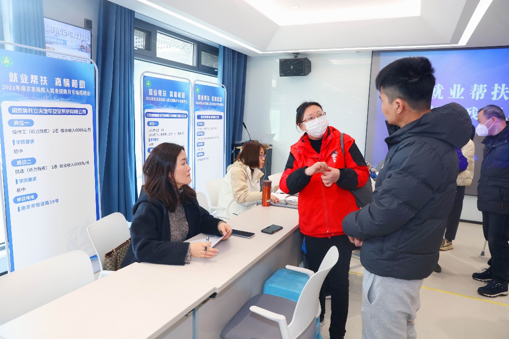 为进一步加强困难群体就业兜底帮扶,1月26日,2024年南京市就业援助月残疾人就业专场招聘会在南京数字零工市场举行。此次招聘会以“就业帮扶 真情相助”为主题,旨在持续推进残疾人就业帮扶工作,搭建残疾人与用人单位的供需平台,促进残疾人高质量就业。