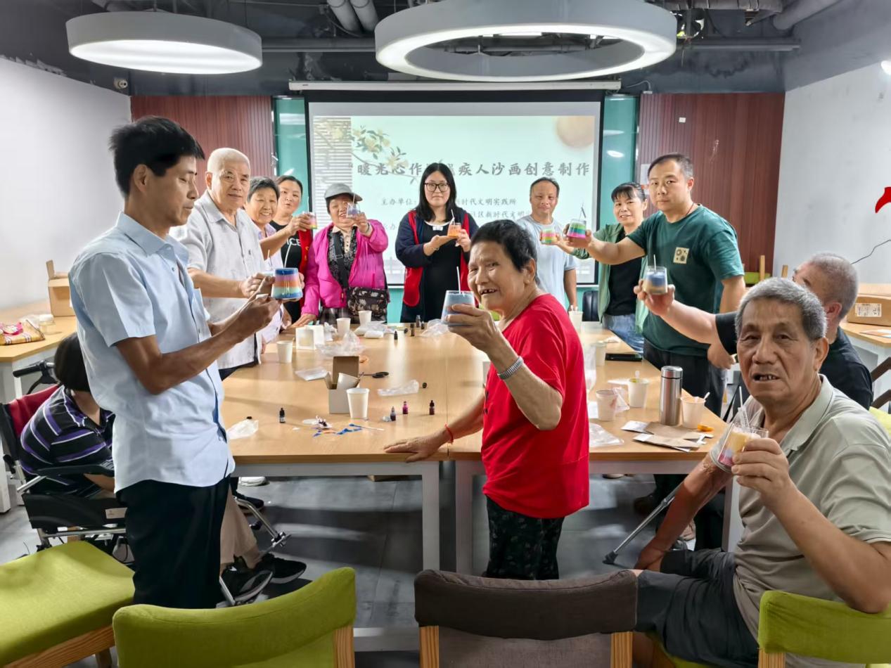 为丰富社区残疾人的精神文化生活,鼓励他们积极参与社会活动,提升动手能力与创造力,近日,农花社区残疾人之家开展了一场残疾人沙画蜡烛创意制作活动,12名社区残疾人积极参与。