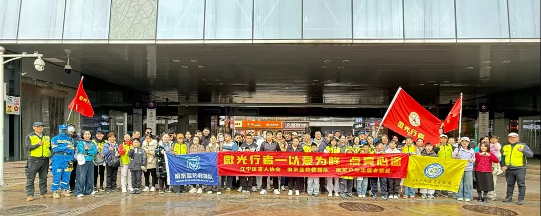 近日,江宁区小龙湾地铁站旁,“微光行者”系列公益活动温暖启程,28位来自江宁区盲人协会的视障朋友,与30多位南京蓝豹救援队、南京户外志愿者联盟的志愿者携手,完成了一场4.3公里的绿道环线徒步。