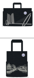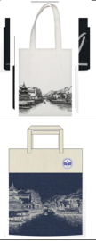 综合比较各种材质,选择易于加工、经济实惠、质量过硬的布料,并设计带有南京标志元素的图案进行印染。