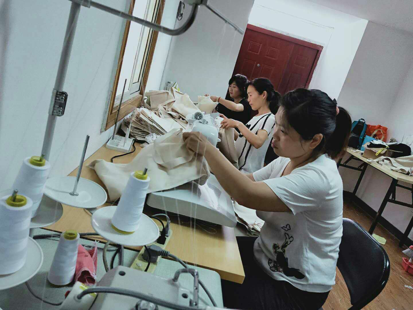 为在规定时间内完成项目订单,在保证质量的同时,残疾人朋友牺牲自己周末休息时间加班加点赶制布包,付出汗水的同时,也收获了成功的喜悦!