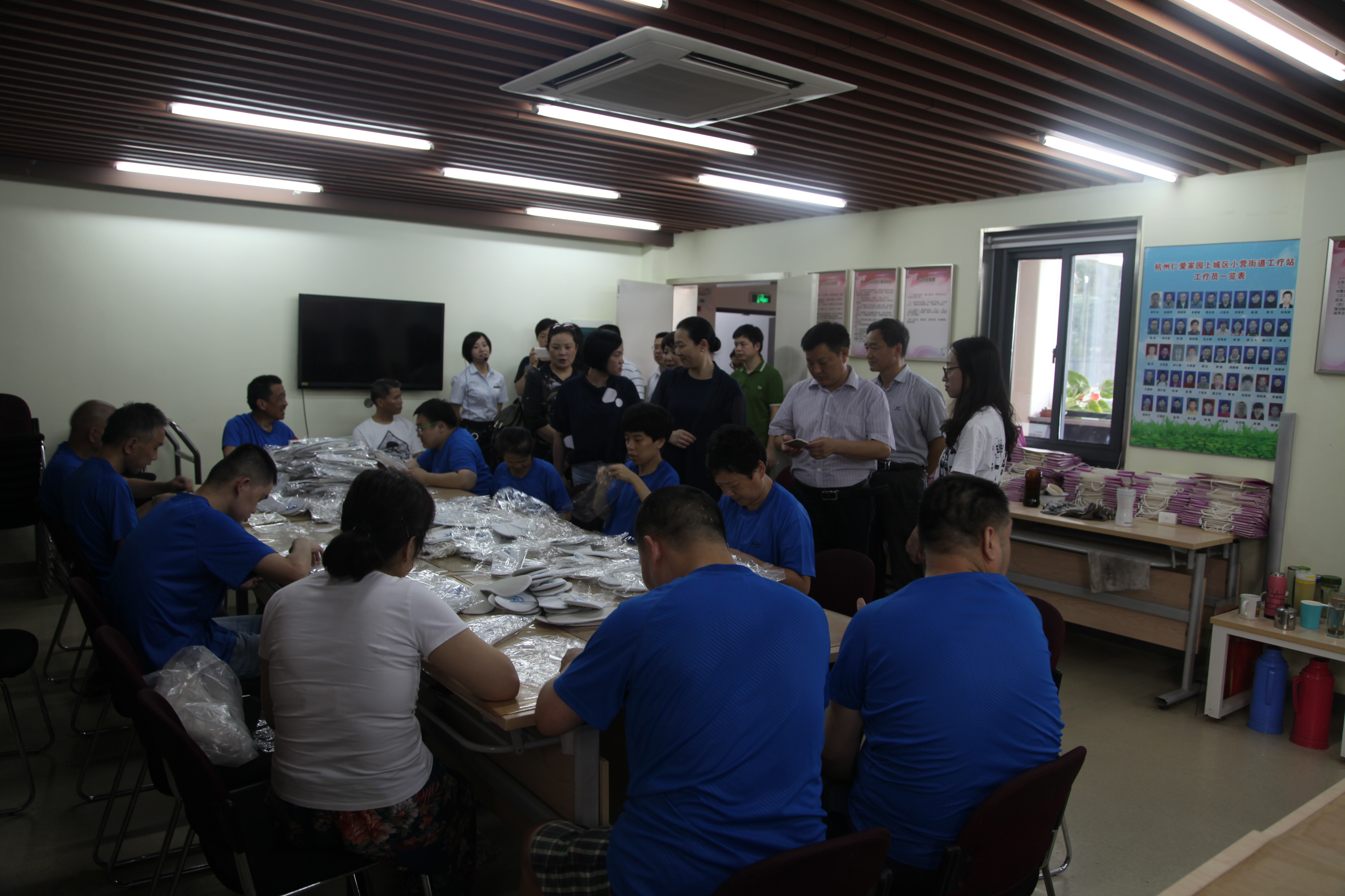 接着,大家重点参观了“小营街道残疾人就业康复基地”---精神病人工疗站,站里配备了驻站医生,负责督促来站康复的精神病人按时按量服药并根据病情变化及时调整用药,开设了绘画、烘焙学习培训和一些简单的辅助性就业项目,中午由街道免费提供一顿午餐,来站精神病人复发率在5%以内,较好地发挥了精神病工疗站的作用。街道能在市中心寸土寸金的居民集中点拿出300多平米的面积开设一家精神病人工疗站已充分说明了对残疾人康复工作的高度重视。小营巷是杭州市的一个缩影,杭州市每个街道都有一个这样的工疗站,均为二类事业单位(没有编制),街道负责落实场地,由社会组织来承接服务。市财政每年补贴工疗站5万元/个运营经费,市、区财政按入站人数3000元/人/年1:1配套补贴工疗站,确保了工疗站的正常运转。