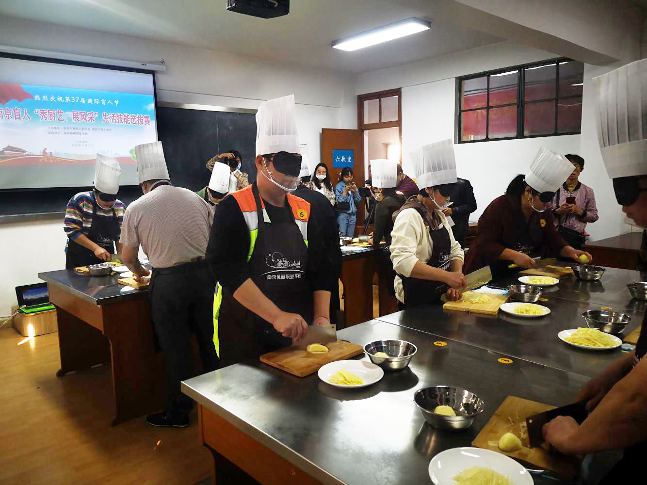 为了庆祝第37个国际盲人节的到来,2020年10月11日,南京市残疾人联合会、南京市盲人协会、南京薇薇职业学校共同举办南京盲人“秀厨艺、展风采”生活技能选拔赛。来自区盲协12个代表队的36名盲人选手、志愿者等50余名人参加了此次活动。南京市残联党组成员、副理事长任金宝,南京薇薇职业学校等领导出席活动。