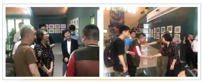 在展览现场,赵素京认真观看了展出的作品,听取了原生艺术中心创始人郭海平对作品和创作者心路历程的介绍,并与部分创作者进行了交流。赵素京对这些原生艺术作品赞不绝口,对南京原生艺术中心多年来通过绘画疗愈,帮助残疾人战胜疾病,走出家门、融入社会并帮助他们实现人生价值、增加收入的做法给予充分肯定,希望南京原生艺术中心继续服务好残疾人,把原生艺术推广到更多地区。