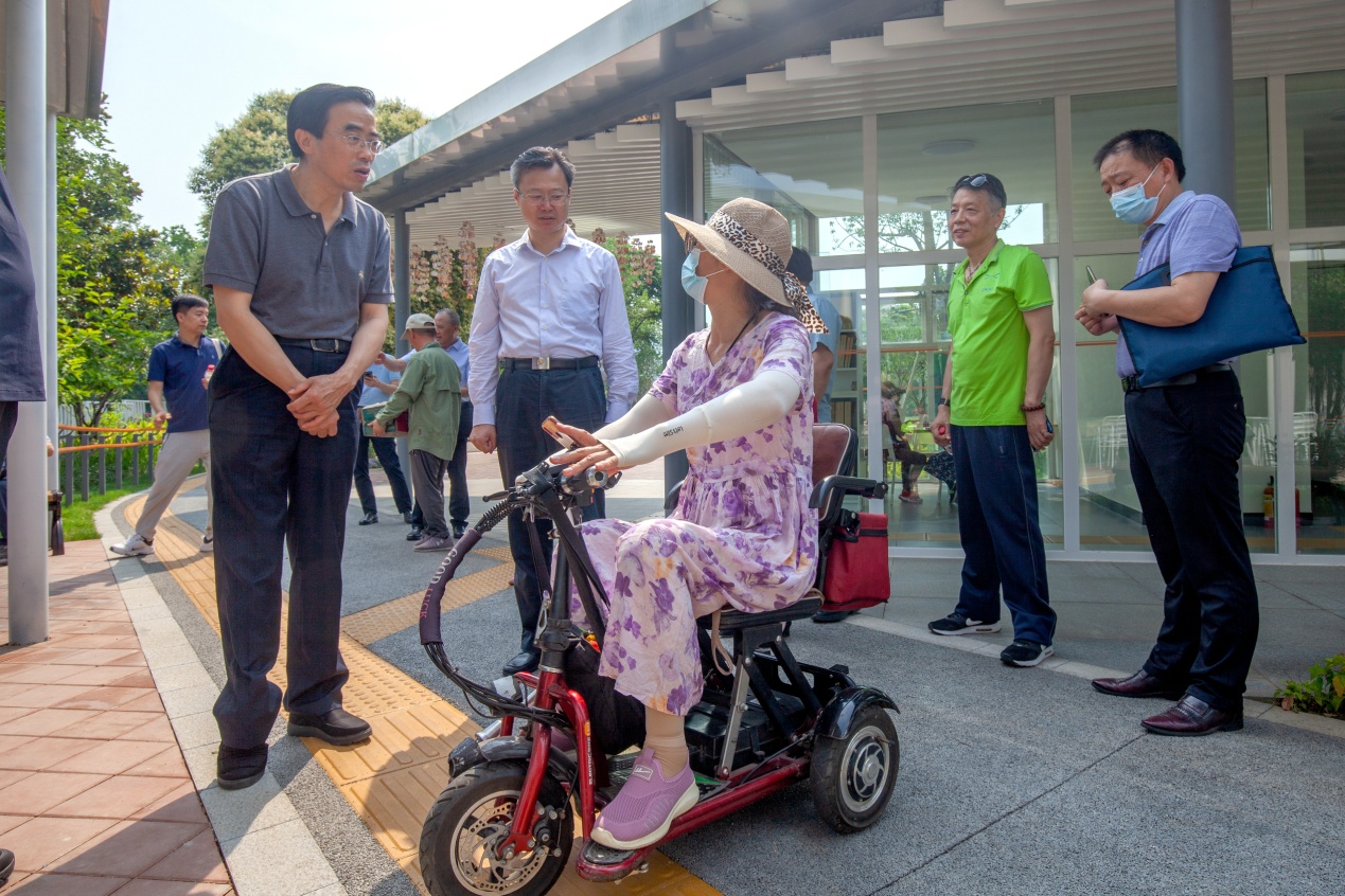 在玄武湖无障碍花园,程凯听取了市建委、玄武湖管理处相关负责同志以及设计团队关于无障碍花园建设情况介绍,亲身体验花园内的无障碍设施,并与游玩观光的残疾人亲切交流,询问游玩是否舒适便利。当听到残疾人对无障碍花园十分满意的回答后,程凯十分高兴,对南京市建设无障碍花园的创新之举赞不绝口。