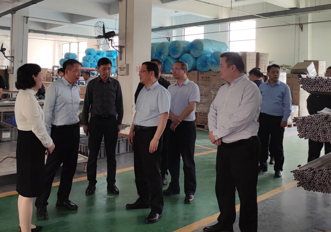 图为:在明博机械制造有限公司了解残疾人集中就业情况
