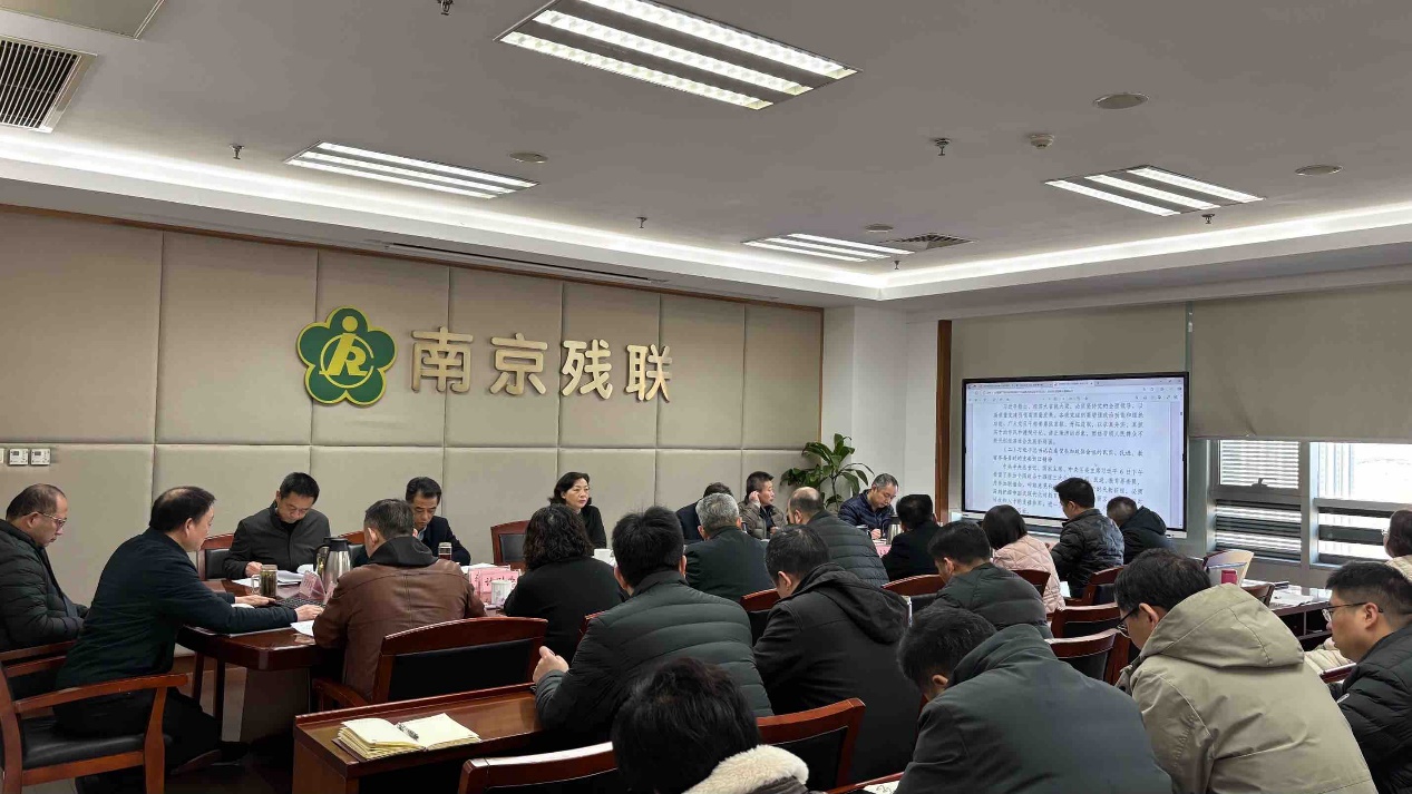 陈芳强调,要切实把准实践路径,以强烈的责任担当推进残疾人工作走在前、做示范,从总书记强调的“四个着力点”和两会关于残疾人工作的部署中找准实践路径,按照中国残联等9部门关于推进科技助残的指导意见,加强残疾人工作领域科技需求和助残科技产品研发和应用,促进残疾人工作与科技深度融合,赋能残疾人全面发展;坚持破立并举、先立后破,以钉钉子精神抓好市残联贯彻落实党的二十届三中全会精神、进一步全面深化改革、促进残疾人事业走在前做示范20项重点举措落实,通过改革打造一批叫得响、可复制、易推广的改革经验和品牌;注重协同联动,更好统筹发展和安全,加强残疾人工作跨区域交流合作,加大我市残疾人工作的宣传,创造更多的南京经验、南京样板,增强南京市残疾人事业发展的内生动力和辐射带动力;巩固拓展脱贫攻坚成果,加强基础性、普惠性、兜底性民生建设和残疾人急难愁盼问题解决,以打造“弱有所扶 宁享幸福”品牌为抓手,健全残疾人社会保障制度和关爱服务体系,推动民生建设更加公平均衡、普惠可及、优质共享,以挑大梁的实绩实效,让全市残疾人共同富裕的成色更足、底色更亮。