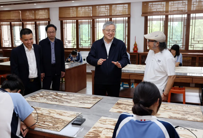 周红波参观学校美术课程基地、手语博物馆和班级教室,鼓励同学们弘扬自强不息精神,努力学习知识本领,勇敢克服困难挑战,积极追求人生梦想。