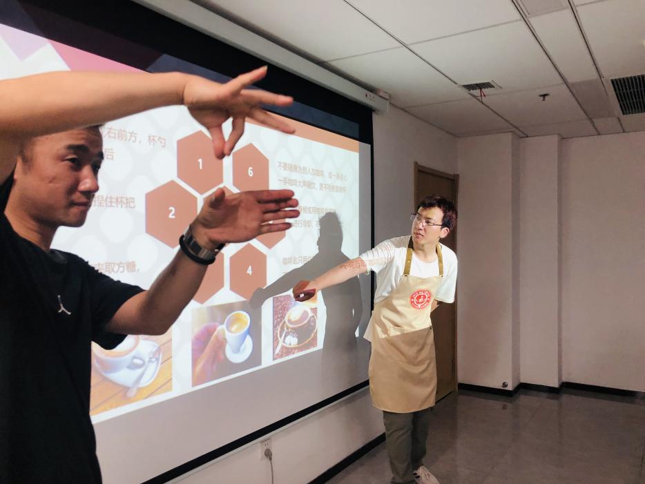 活动现场,咖啡师刘坤老师为大家详细介绍了咖啡的知识,涵盖了咖啡店点单小TIP,咖啡的种植,咖啡的烘焙、咖啡的发展、咖啡的正确品鉴方法,喝咖啡的礼仪等小知识,内容丰富,手语老师很卖力,大家学得很入神。