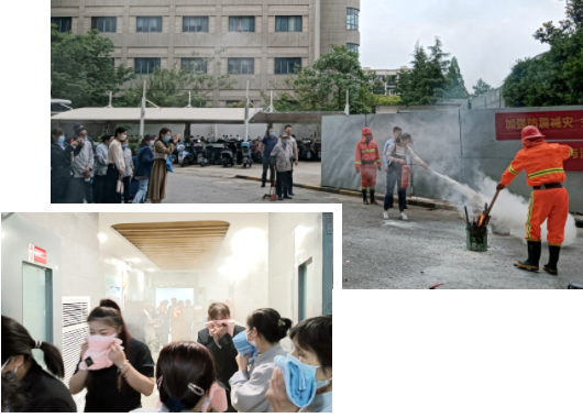 消防员就此次消防演练为大家讲解消防安全、火灾逃生等知识,教授大家灭火器的正确使用方法。随着演练总指挥发出火警救援指令,灭火救援疏散演练开始,消防员到达指定岗位,指导大家按照疏散方案,用湿毛巾捂住口鼻有序地用最短时间从安全通道疏散到安全地带。