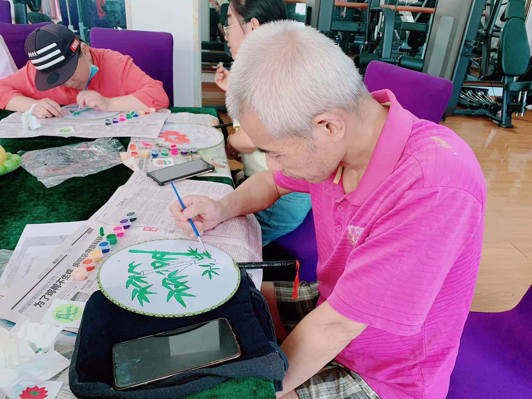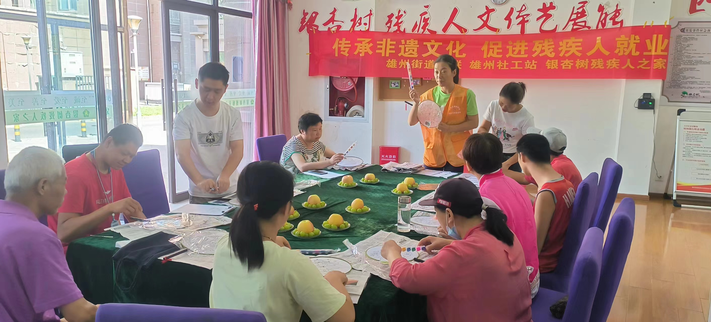 为了丰富残疾人之家辅助性就业项目,促进残疾人就业,更好传承非遗文化,8月2日,六合区雄州街道残联、社工站、银杏树残疾人之家开展“传承非遗文化,促进残疾人就业活动”——非遗团扇手工制作活动。