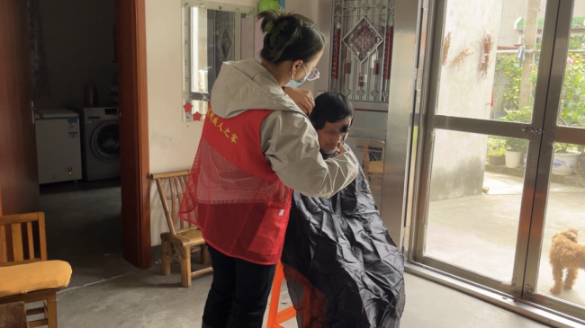 活动当天,志愿者们携带理发工具,来到视障人士家中,为他们免费理发,并帮助清理家中卫生。