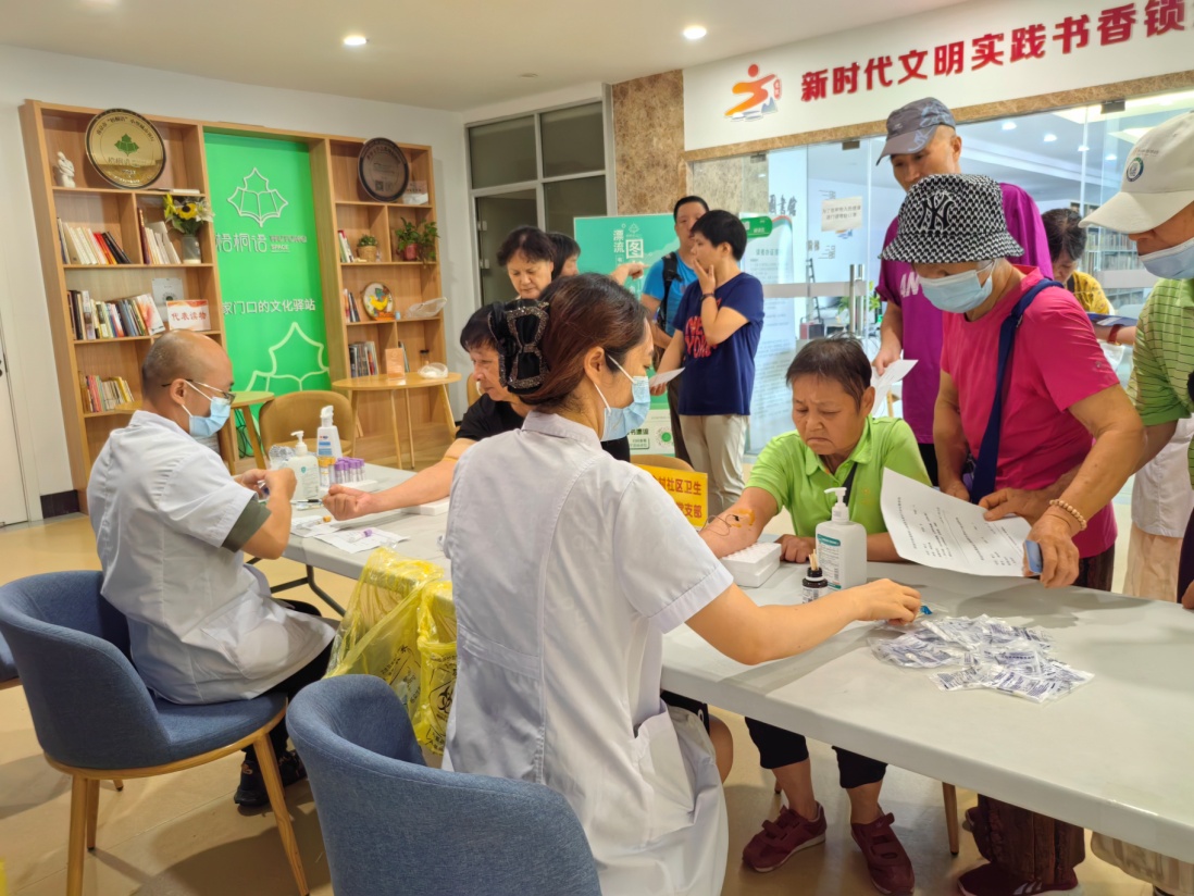 早上8点不到,锁金村街道门口就来了不少前来参加活动的残疾居民。“放轻松,握紧拳头……”活动中,社区卫生服务中心的医务人员一边为辖区残疾居民进行了身体检查,检查项目为肝功能三项、肾功能三项和血常规,一边耐心讲解相关疾病的预防和治疗相关知识,并提醒他们:注意饮食、定期复查、适量运动,养成良好的生活习惯。