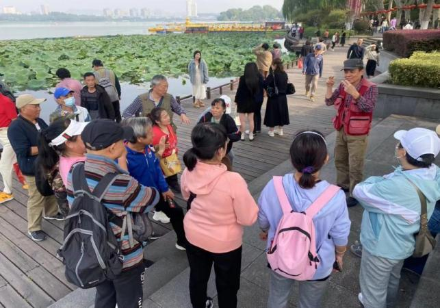 金陵秋意渐浓,听障朋友们当天上午先来到玄武湖公园摄影实操讲解与交流,秋天的玄武湖一幅色彩斑斓的景象,红黄绿斑斓多姿,乌桕树正在变色期,点缀在古雅的亭台楼阁间,秋风吹来,柳条在湖面上轻柔的晃动着,仿佛婀娜多姿的姑娘在跳“秋之舞”。来自无声世界的摄影爱好者面对美好的风景仿佛进入了资源的宝库,一时间只听见相机快门声音此起彼伏,老师耐心地进行指导,针对现场风景和人物开始了摄影技巧讲解,大家在老师的指导下逐渐掌握了要领,纷纷举起相机和手机。边拍摄边交流,在无声的世界感知美好,听障朋友在优美的环境中上了一堂摄影实践课。