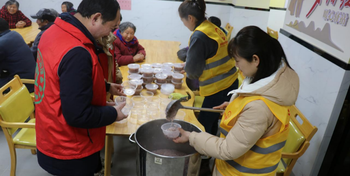 1月18日一大早,马鞍街道黄岗村残协及残疾人之家工作人员早早就来到了工作岗位,将早已准备好的糯米、黑米、薏米、莲子、红豆、桂圆、红枣等食材熬成浓郁糯香的腊八粥,并贴心地盛到保温箱里,一一送至残疾人家中。