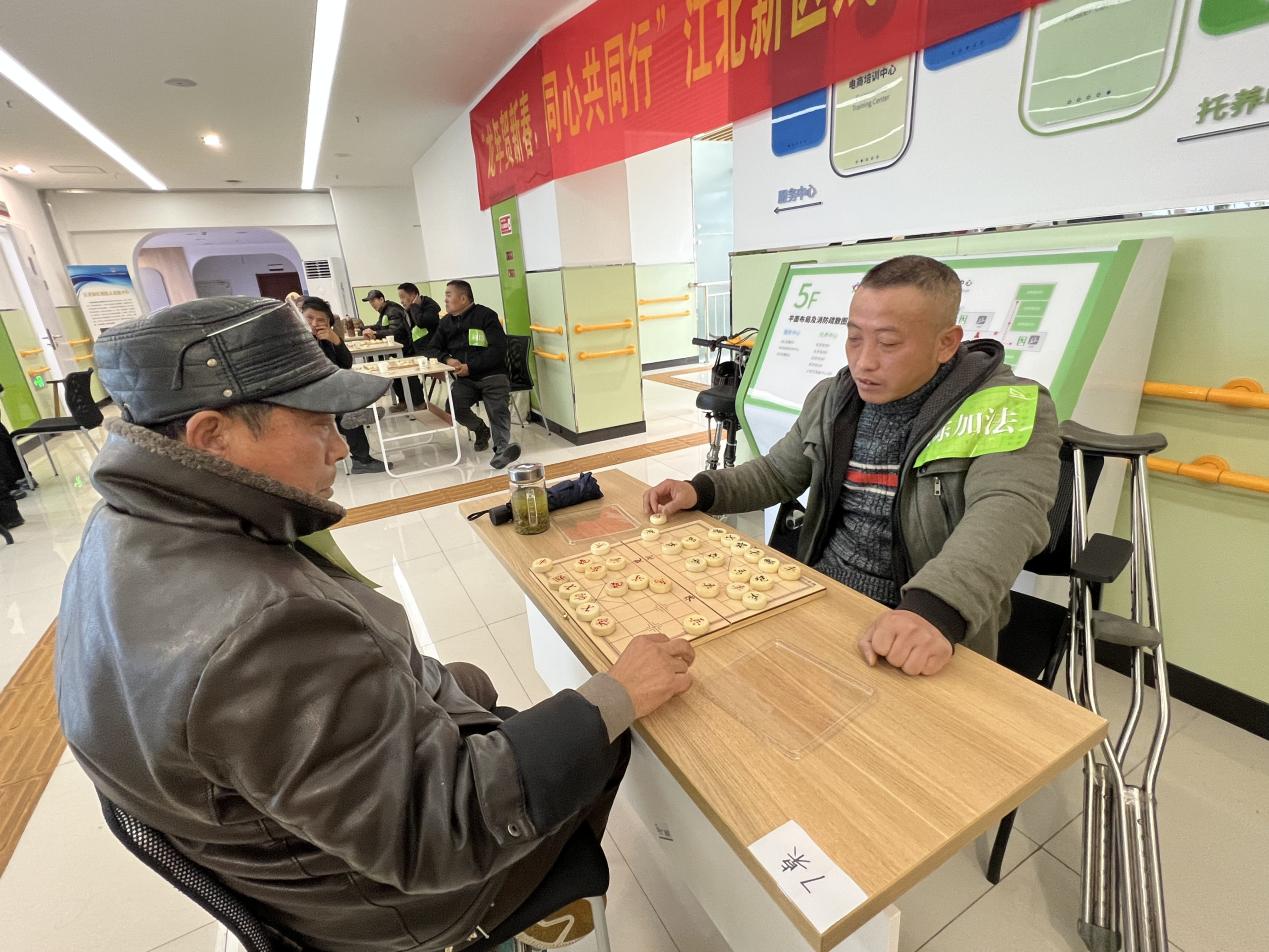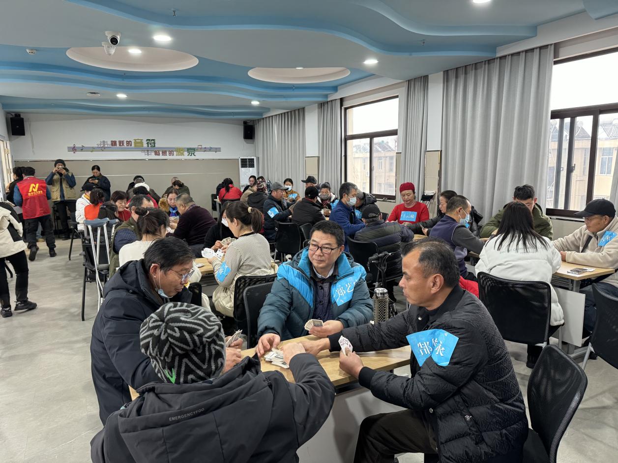 随后,紧张激烈的比赛正式拉开帷幕,80名选手一往无前向冠军挺进。摆好棋子,楚河汉界泾渭分明,平日台下自称业余爱好者的选手徐师傅到了棋盘之上,立展大将之风,一马当先来了个“当头炮”,对方也不甘示弱了来个“屏风马”摆出防守阵式,他俩势均力敌,旗鼓相当,徐师傅见状仍胸有成竹,赢得了最终胜利。另一边的掼蛋比赛也在如火如荼地进行中,青年选手小杜运筹帷幄,每一步走得又快又稳但出其不意,很快击败对面的“前辈”选手。比赛结束后,小杜便将技巧倾囊相授,惹得前辈连连称赞道,“掼蛋打得精,说明思路清,掼蛋不怕炸,说明胆子大!小伙子前途无量!”