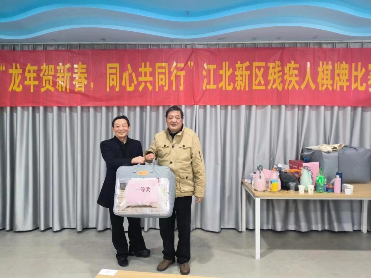 最终,经过四轮的紧张比拼,来自大厂街道的参赛选手崔兆华获得象棋组一等奖,大厂街道的张大林获得二等奖;来自大厂街道的郑艺中、许斌获得掼蛋组一等奖,大厂街道的湛金宁、沈顺英获得二等奖。江北新区肢残人协会副主席宋恒立为优胜者颁发荣誉证书及奖品。