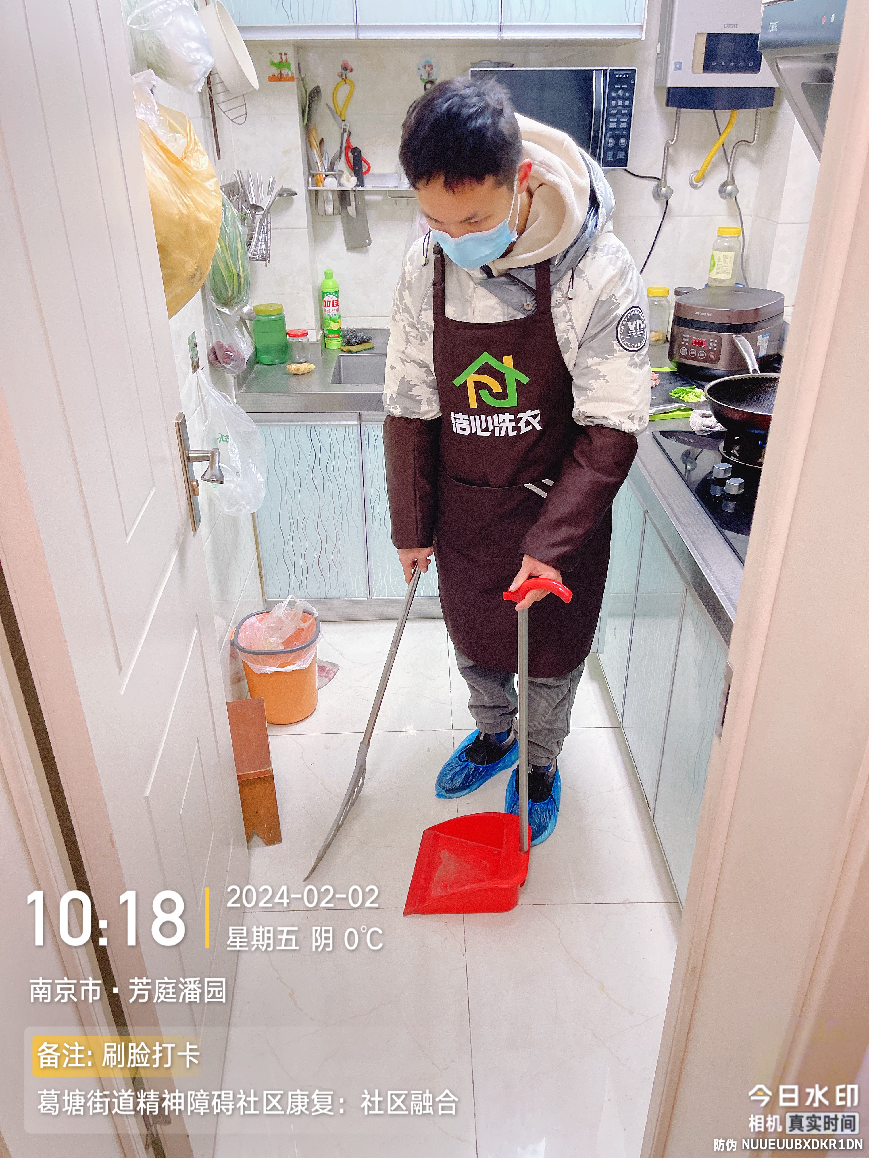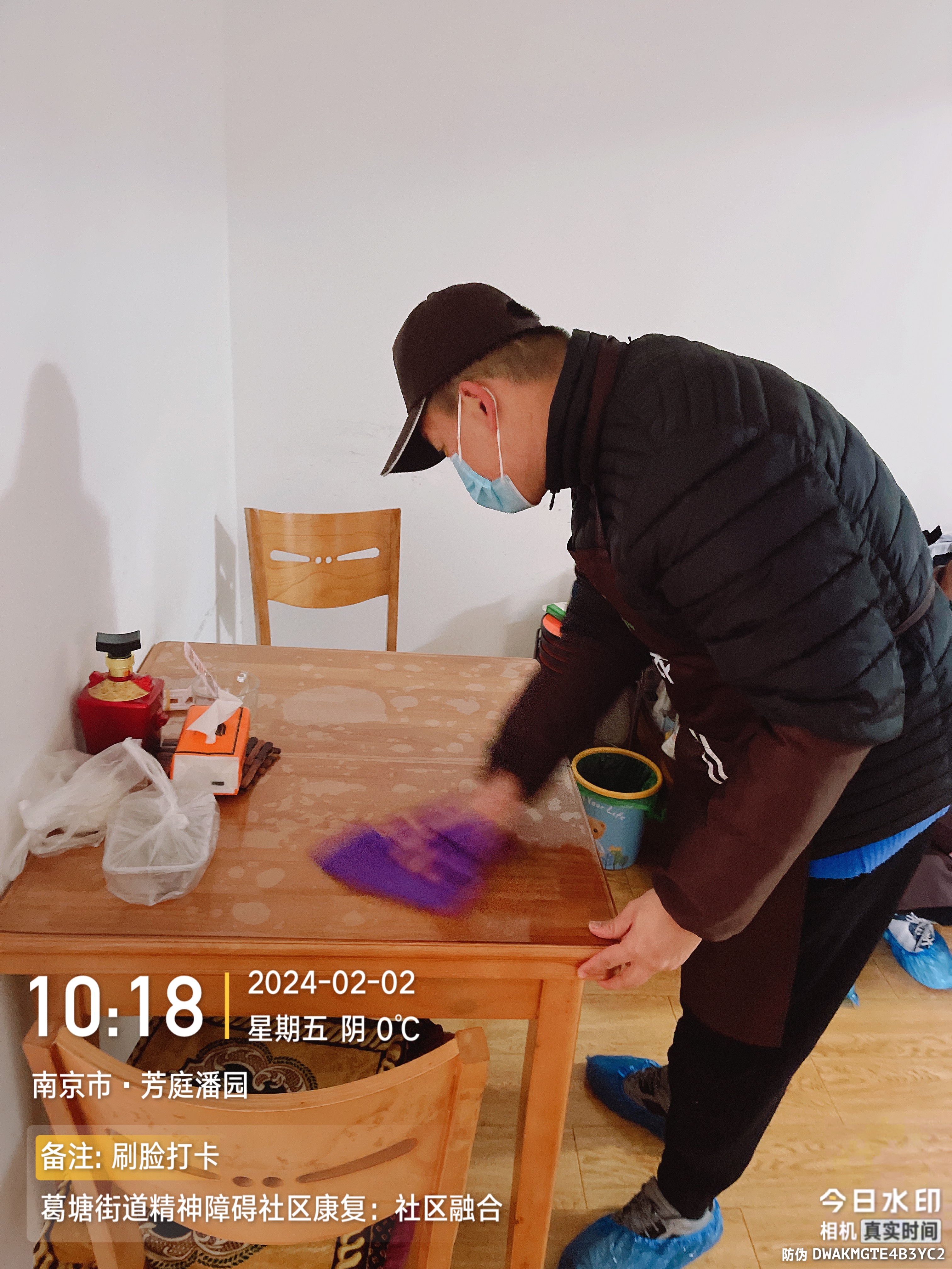 “这些人也能干活?”“他们会不会发病?”……当江北新区希望残疾人之家“洁心志愿服务队”走进葛塘街道芳庭社区时,他们的身影吸引了社区居民的目光,也带来了不同的声音。在固有印象中,这是一群生活在社会主流之外、身心障碍严重且需要看护和照料的一群特殊人士。然而就在2024年2月2日的早晨,“洁心”志愿服务队的5名精神障碍残疾人提着洗化用品,拿着清洁工具走进了葛塘街道特困、重残家庭,他们决心用自己的实际行动去积极证明“你行我也行!”,同时也积极去锻炼自己。