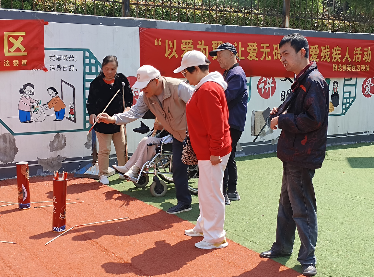 文艺表演结束后,社区充分考虑残疾朋友的身体和心理状况,准备了让每位残疾朋友都能参与并享受其中的游戏,比如套圈游戏、吹乒乓球等。