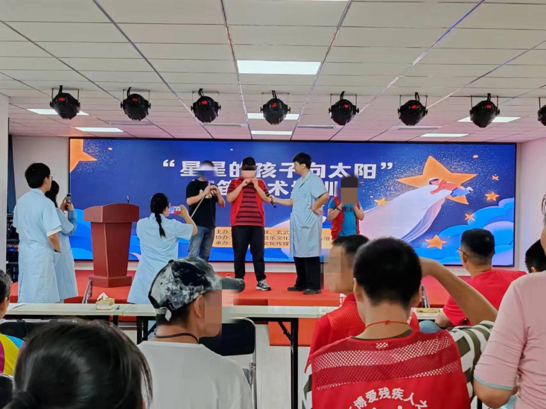 随后,培训老师和大家进行了互动交流,现场气氛十分活跃。在老师的现场指导下,大家认真学习并上台表演,开心的感觉溢于言表。此次培训活动的举办,让“星星的孩子”在感受艺术魅力的同时,也感受来自家庭与社会的温暖和爱心,为他们点亮未来的道路。