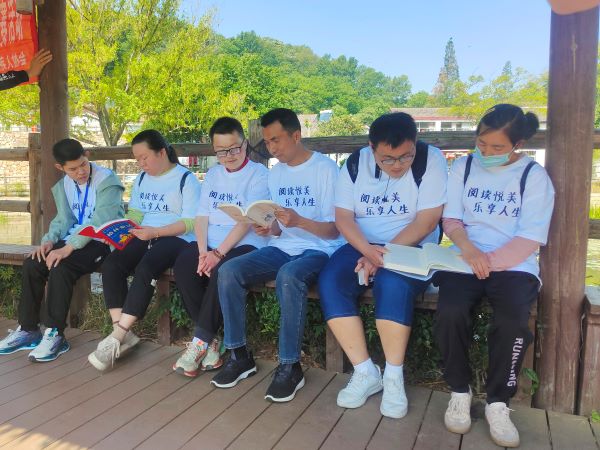 活动现场,三十余名残疾人在群山环绕的自然环境中,沐浴在和煦的阳光下,开展阅读分享。翻开书页,在墨香中开启心灵之旅。有人轻声诵读经典名篇,有人沉浸于原创佳作,自然的风声鸟鸣与朗朗书声交织,构成动人的乐章。从《平凡的世界》的坚韧精神,到《瓦尔登湖》的自然之美,思想的火花在交流中不断迸发。