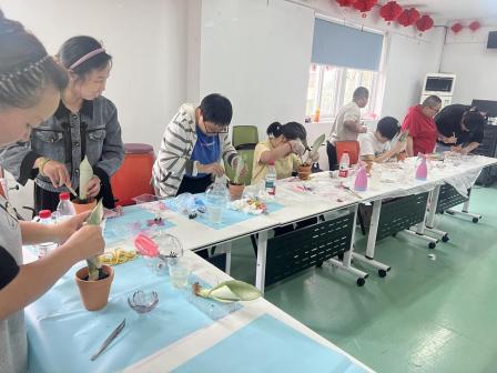 为进一步提升残疾人职业技能水平,鼓励残疾人充分融入社会,丰富精神文化生活,雨花台区残联继续开展“送培训进社区”活动。6月12日和13日,在铁心桥街道春和残疾人之家开设了为期两天的园艺课程培训班,现场有15名残疾人参与培训。
